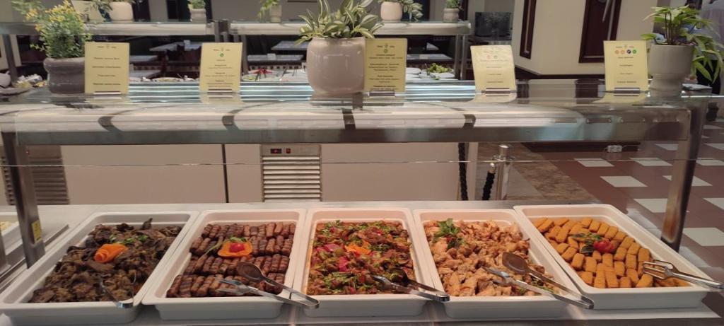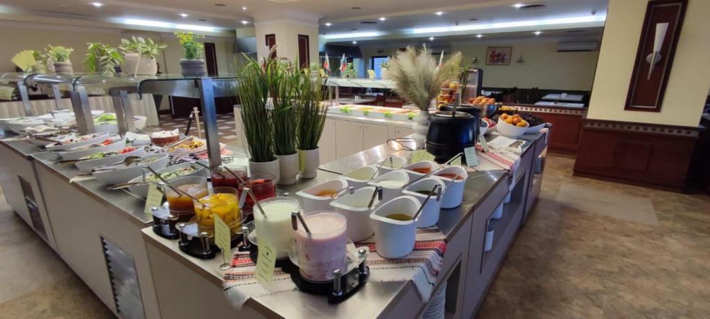 üdítőitalok (Coca-Cola, Fanta narancs, Sprite, Tonic, szóda), gyümölcslevek, víz, tea, kávé, bolgár alkoholos italok, csapolt sör, fehér- és vörös asztali bor.