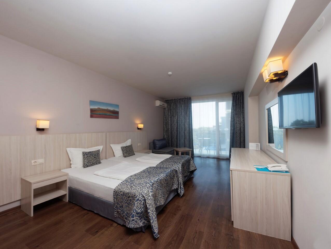 A teljesen légkondicionált, 6 emeletes épületben kellemes, napos terasz és három medencéből álló kaskád található, ahol ingyenes napágyak és napernyők állnak rendelkezésre. Az épületben 4 lift és 1 panorámalift működik. A hotel kényelmes kétágyas szobákat kínál. Az elegáns előcsarnokban recepció, széfek, csomagtároló, lobby bár napos terasszal, biliárd, gyerekszoba és kényelmes pihenőhely található. A hotel fő étterme büfé rendszerű, nagy terasszal, továbbá snack bár és medencebár is működik. Minden nyilvános területen és a szobákban ingyenes Wi-Fi áll rendelkezésre. 1 szoba mozgássérült vendégek számára alkalmas.