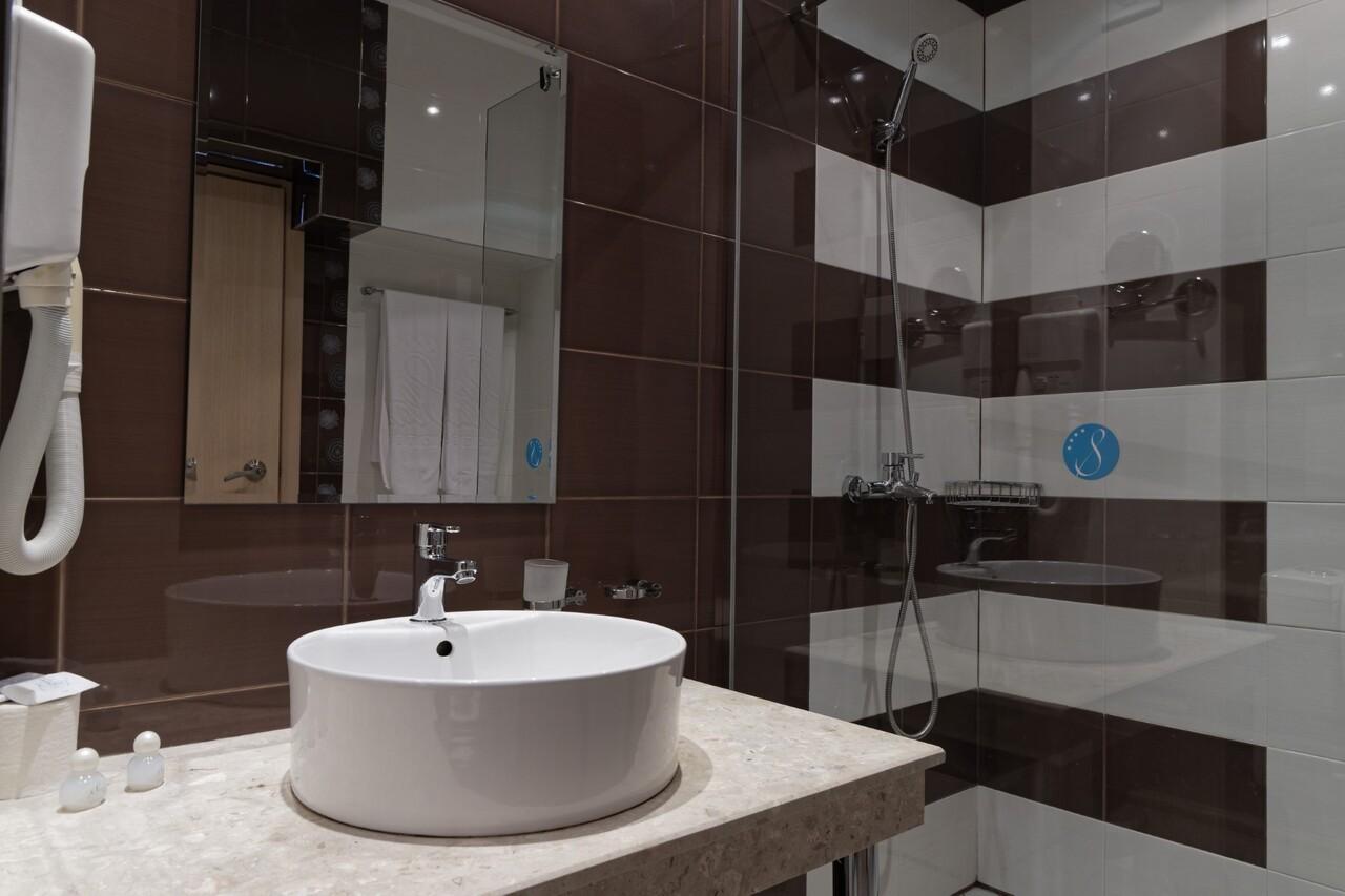 Minden szobában: egyéni légkondicionáló, telefon, műholdas TV, minibár, zuhanyzós fürdőszoba, törölköző, hajszárító, erkély asztallal és székekkel. A padló laminált parketta.