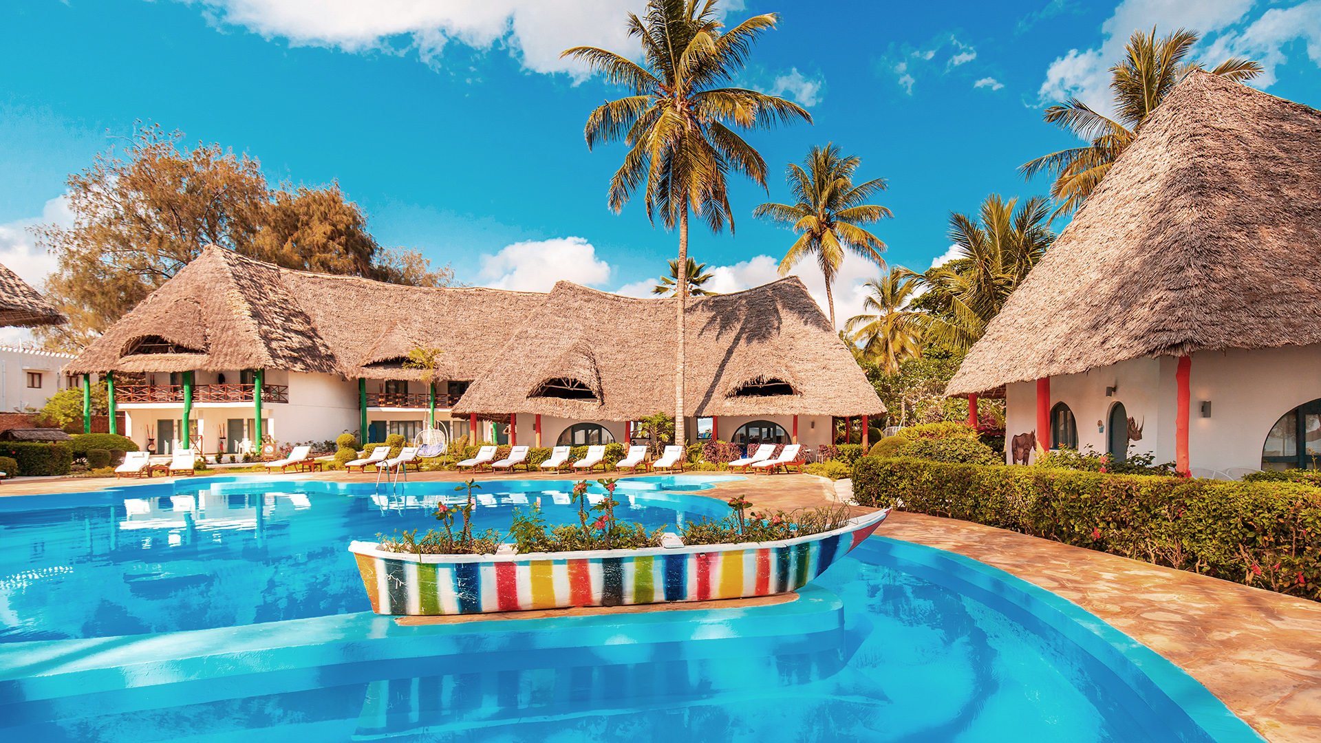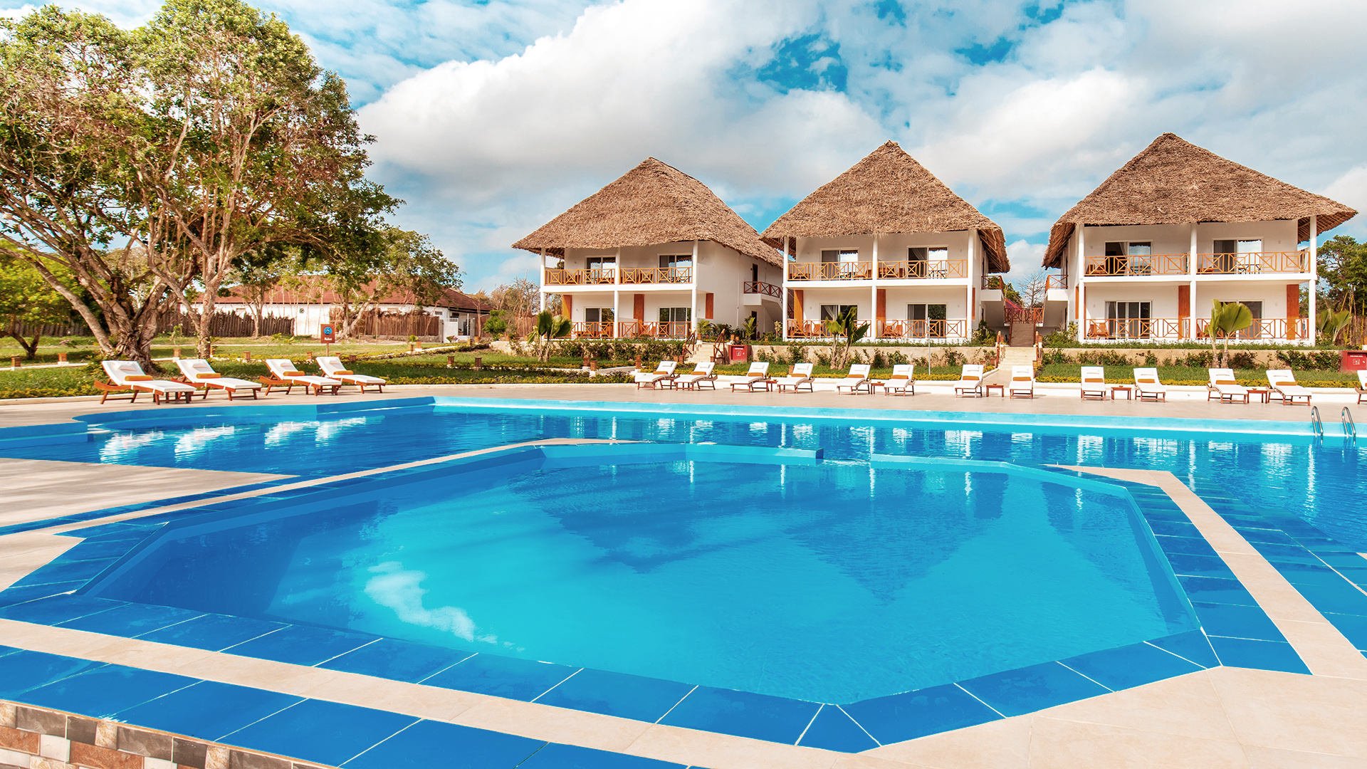A több épületből és bungalókból álló, helyi stílusban épült szállodakomplexum egy gyönyörű trópusi kertben található, kb. 1 km-re Kiwengwa falutól és kb. 50 km-re a repülőtértől.